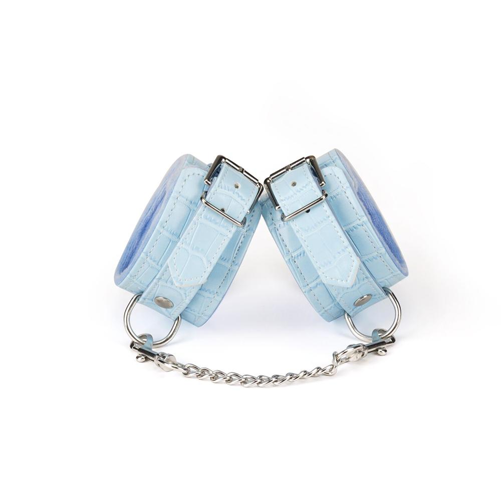Манжети для ніг. Забезпечені кільцями та з’єднувальним ланцюжком для фіксації між собою, з руками або так, як підкаже фантазія. Підходять на щиколотки від 15 до 28 см в обхваті. Ширина манжет 5,5 см, загальна довжина 40 см.